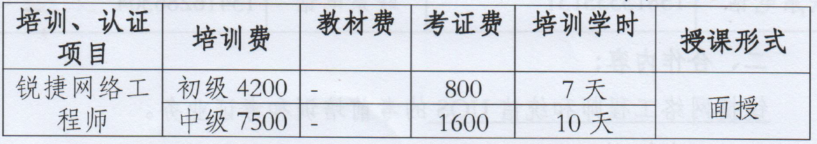 锐捷培训与认证收费标准: