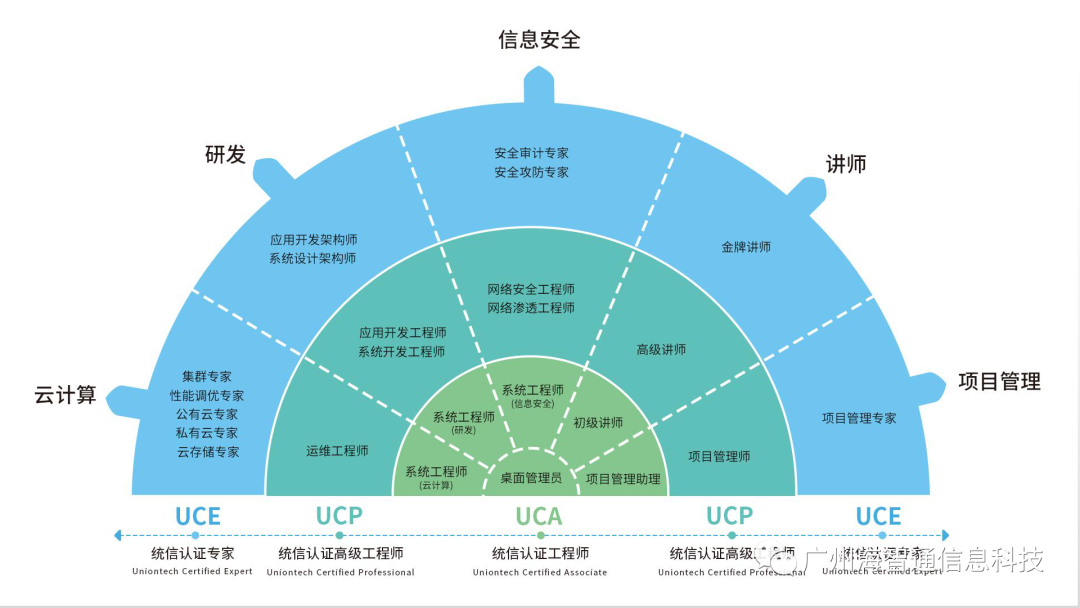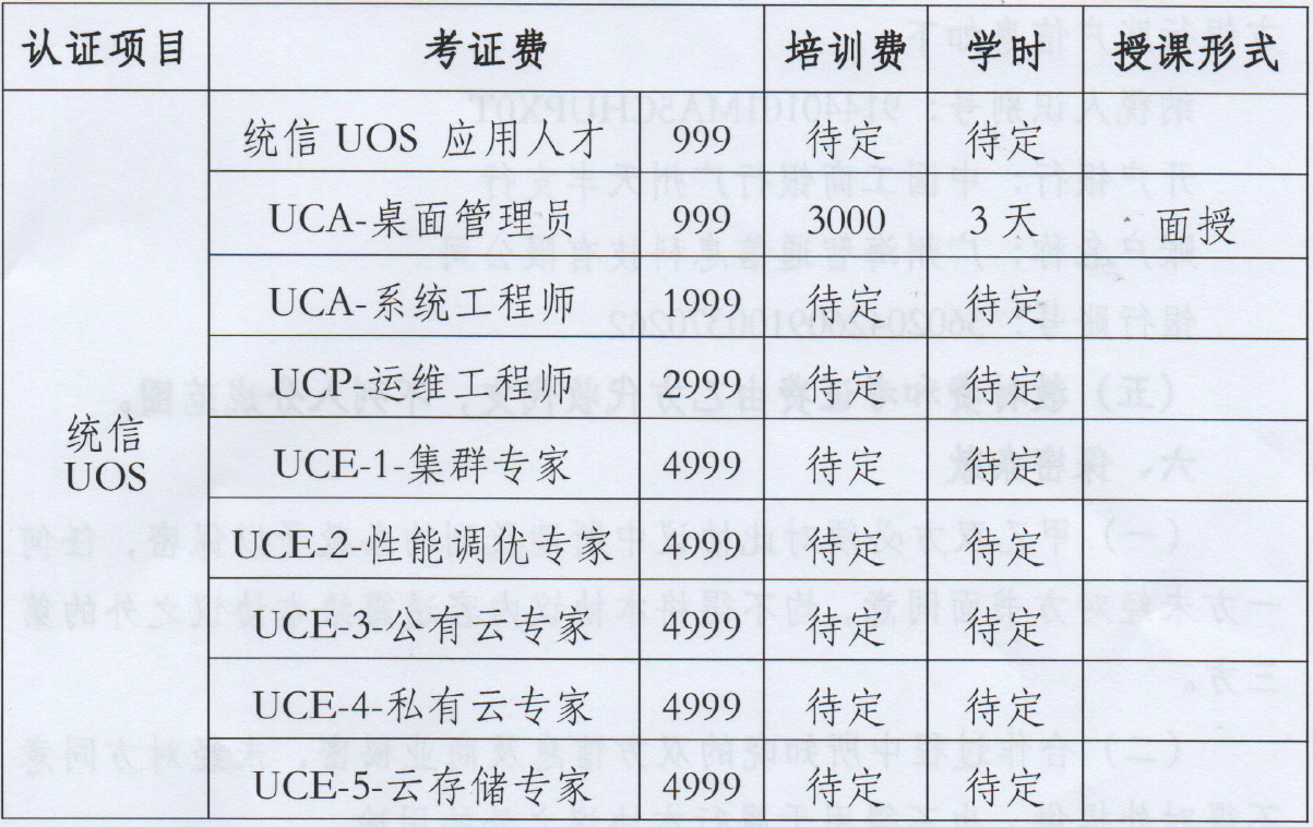 UOS认证包含UCA桌面管理员、UCP运维工程师、UCA系统工程师、UCE公有云专家、UCE集群专家、UCE私有云专家、UCE性能调优专家、UCE云存储专家等
